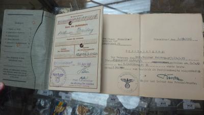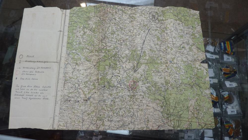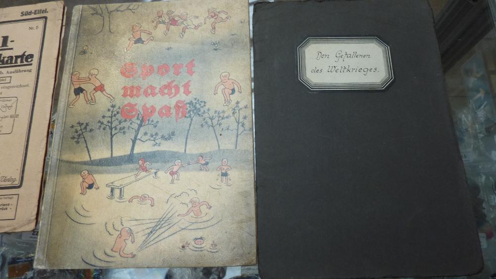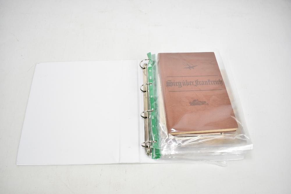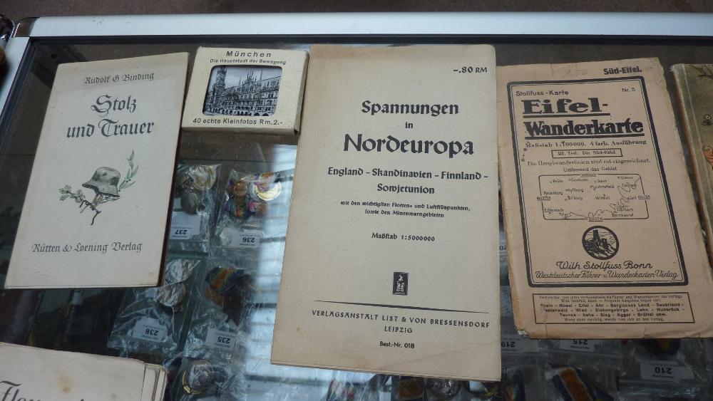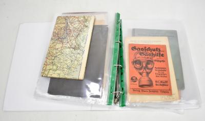 Lot 301 of 2137: A collection of predominantly Third Reich era ephemera including a book entitled 'Sieg Über Frankreich, Wehrpas' and related documentation including part of a map featuring Minsk with hand written notes and annotations, an English language linen double sided map of Norther Egypt stamped 'Restricted', further booklets and maps, one titled 'Strassenzustands-karte von Deutschland', a book entitled 'Stolz und Trauer' by R.B. Binding, a small group of postcards promoting the Aryan race, etc.