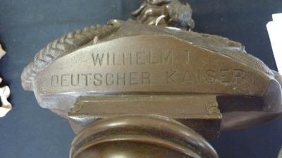 Lot 304 of 2137: A bronzed metal bust of Kaiser Wilhelm I, signed C. Keil and further stamped 'Guss. H. Gladenbeck U Sohn Friedrichshagen', height 35cm.