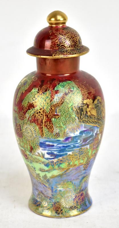 Lot 897 of 2137: A 'Wilton Ware' lustre lidded vase with painted and gilt chinoiserie decoration, mark to base, height including lid 21.5cm.
