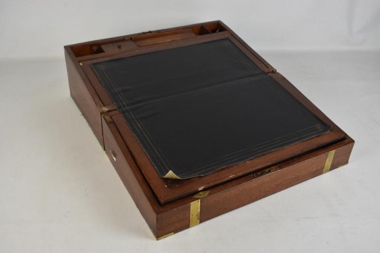 Lot 7 of 2139: A Victorian mahogany veneered writing slope, the hinged cover enclosing compartments and slide, width 46cm.