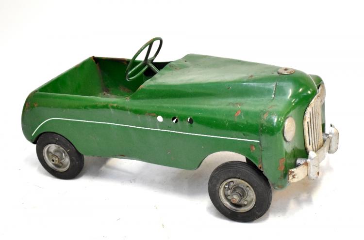 Lot 375 of 2139: A green painted child's pedal car (for restoration), length 102cm.