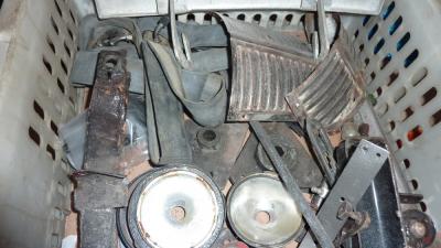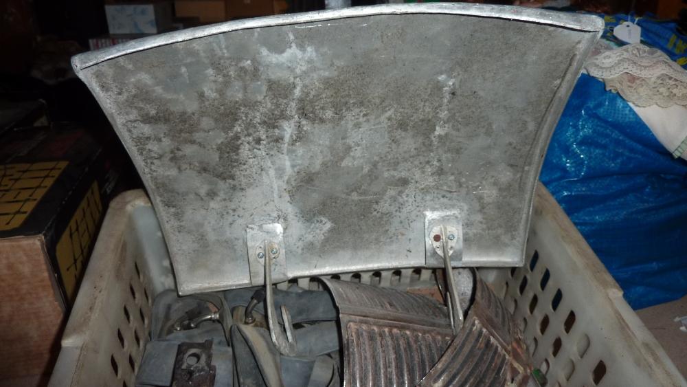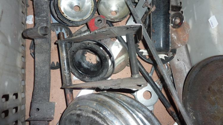 Lot 376 of 2139: Four chromed hub caps for an Austin pedal car and other related items.