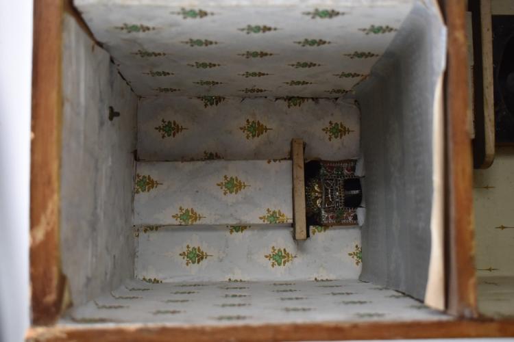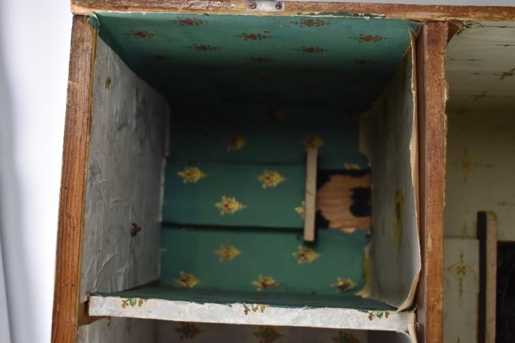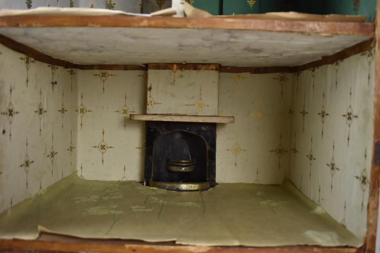 Lot 386 of 2139: THE TYDD ST MARY DOLLS HOUSE; a mid-19th century painted pine dolls house, originally owned by the Kilham Family of Wisbech, with original interior wallpapers, two original fireplaces and a group of the original furniture and furnishings, including ceramic lustre glazed cup and saucer, pair of mirrors, bed, tables, chairs, sofa, etc, several of these pieces bearing the names or initials of the children. The Kilham Family lived at Tilney Hall, Manor House and The Grange in Tydd St Mary.