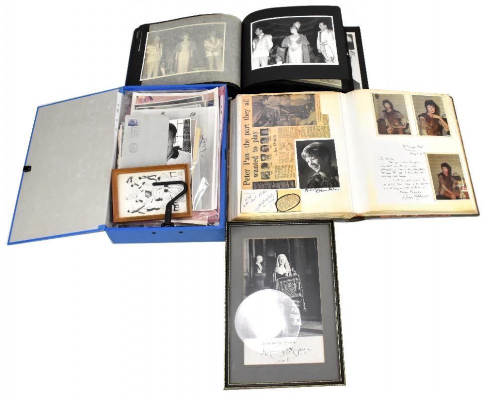 Lot 833 of 2139: SHOW BUSINESS; a collection of predominately theatrical ephemera including Peter Pan themed album with signed photographs and autographs including Dorothy Dickson, Alma Neagle etc, a 'Fifty Years of Peter Pan' book featuring cast autographs from various productions including Margaret and Julia Lockwood, Sarah Churchill, Dawn Addams, Glynis Johns, Millicent Martin, Bonnie Langford etc, a Yana themed photograph album with numerous signed examples (many personally dedicated), and further mixed ephe