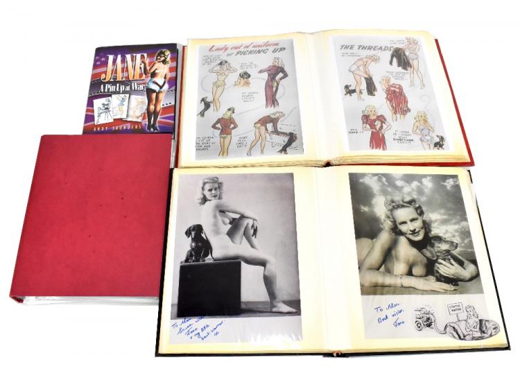 Lot 834 of 2139: CHRYSTABEL LEIGHTON-PORTER AKA 'JANE'; an archive featuring the 1940's pin up star with numerous signed photographs and coloured prints, the vast majority personally dedicated, an album of correspondence and 'Jane a pin up at war' by A.Saunders with dedication to inside cover.
