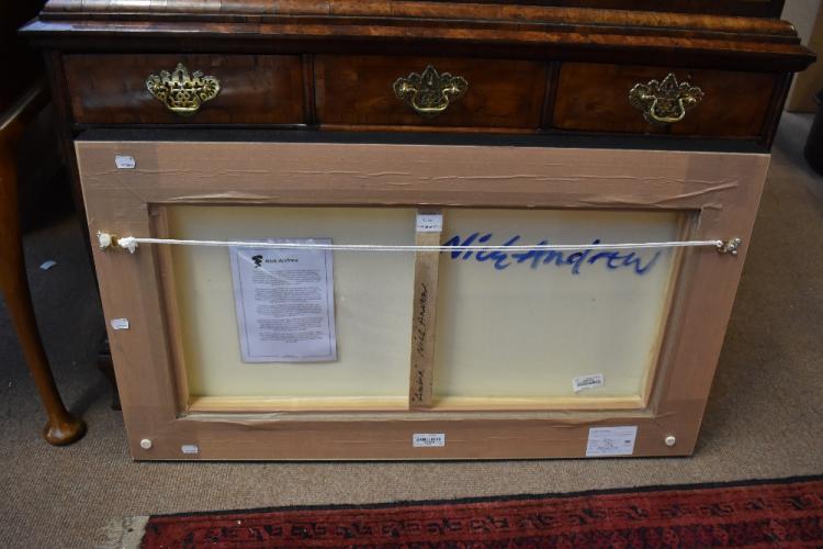 Lot 1075 of 2139: NICK ANDREW; acrylic on canvas, 'Ambria', signed lower right, 40.6 x 81.2cm, framed. (D)