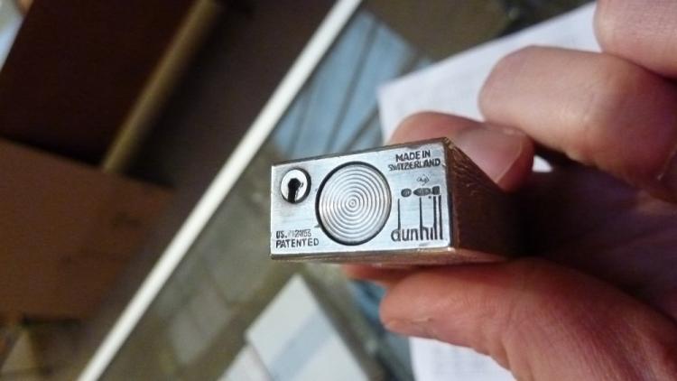 Lot 47A of 2139: DUNHILL; a rare cased silver and wood grain effect rectangular Rollagas lighter, the base stamped 'US24163 Patented, Made in Switzerland, Dunhill' with import hallmarks, boxed with original paperwork, height 6.5cm.