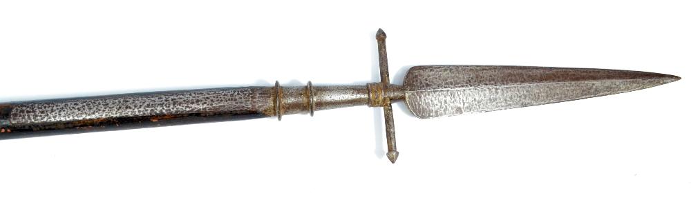 Lot 515 of 1701: A wooden shafted spontoon with shaped blade and ring loop mount, length 170cm.