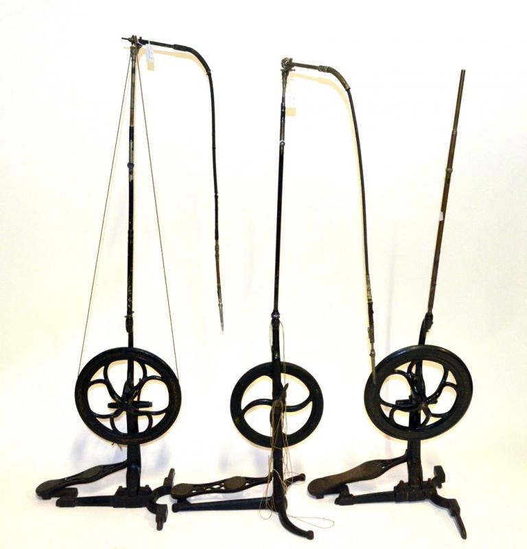 Lot 1259 of 1701: Three black painted dentists' wheels, height of largest 142cm (3).