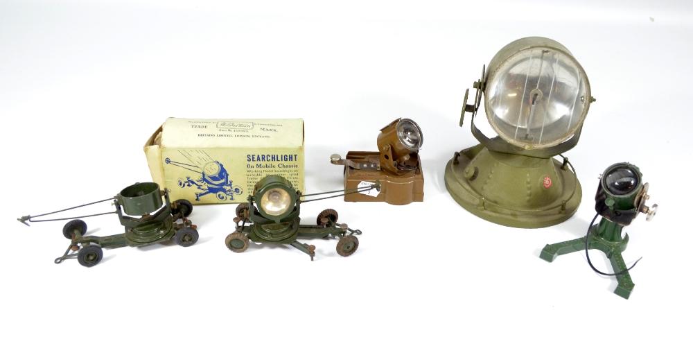 Lot 1262 of 1701: ASTRA; a boxed Britain model of a searchlight; a boxed model searchlight and three further models of searchlights (one lacking lens section) (5).
