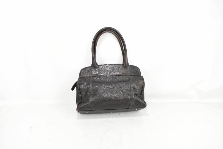 Lot 34 of 2698: EMPORIO ARMANI; a dark brown textured leather handbag with gold toned hardware with embossed logo.