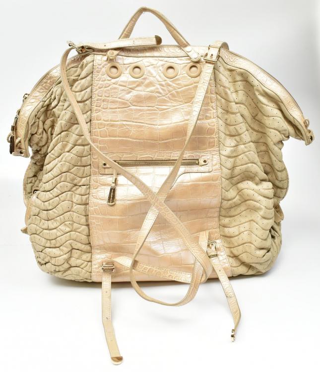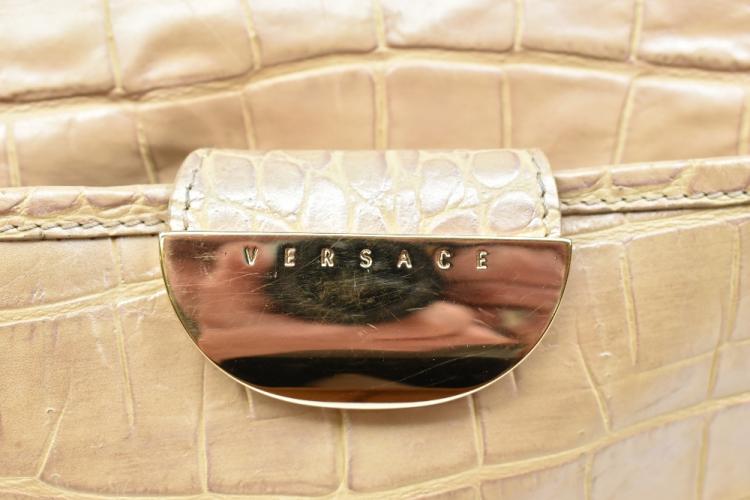 Lot 36 of 2698: VERSACE; a cream crocodile skin leather and cream Napa leather backpack/shoulder bag, with gold-tone hardware displaying Versace logo, 44 x 52 x 14cm.