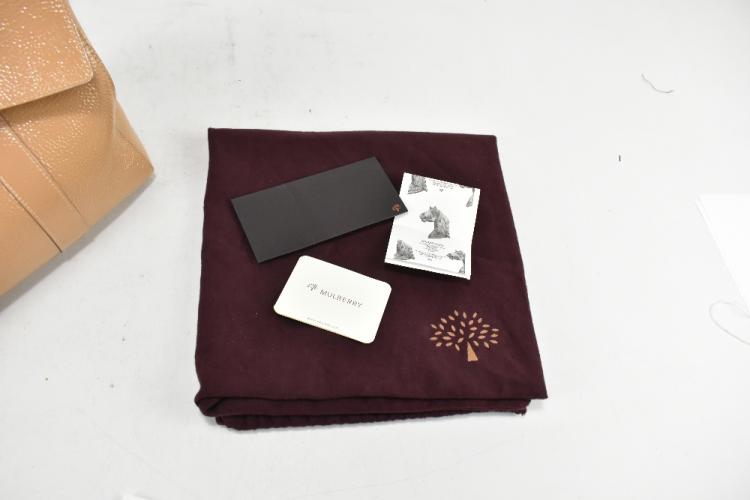 Lot 41 of 2698: MULBERRY; a bayswater 'nude' patent leather handbag sold with correct dust bag, care card and receipt when purchased from Mulberry Knightsbridge in 2010, interior tag numbered 956839, width approx 38cm.