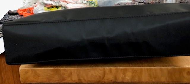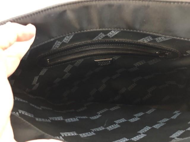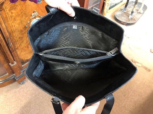 Lot 47 of 2698: GIANFRANCO FERRE; a black leather handbag with design logo stamp, 33 x 28 x 12cm, and a Gianfranco Ferre black nylon and leather handbag with leather shoulder straps, 40 x 28 x 8cm (2).