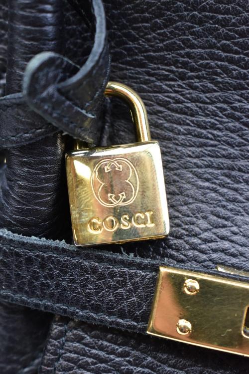 Lot 51 of 2698: COCSI, ITALY; a black grained leather 'Birkin' handbag with gold hardware including padlock and key, 40 x 28 x 16cm.