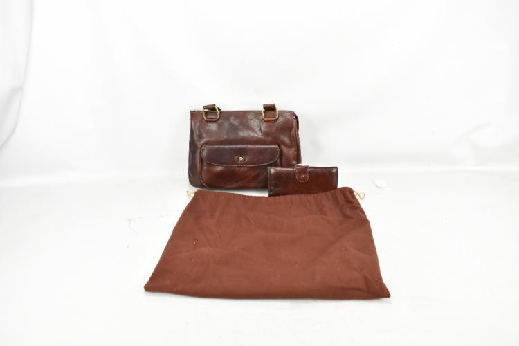 Lot 57 of 2698: THE BRIDGE; a brown leather handbag with front pocket, 32 x 23 x 4 cm, with dust and The Bridge, a brown leather large wallet, 19 x 10 x 2cm (2).