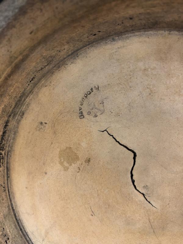 Lot 1165 of 2698: DAVENPORT; a terracotta vase with Bacchanalian moulded masks and basket weave effect to the body, impressed marks to base, height 23.75cm.