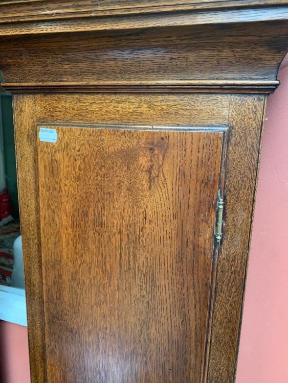 Lot 2505 of 2698: JOHN PURDEN OF MAIDENHEAD; an oak cased longcase clock, the hood with blind fret decoration to cornice, enclosing brass face, the brass dial with Roman numerals, raised on bracket feet, height 210cm.