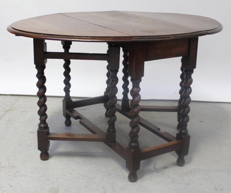 Lot 85 of 796: An oak dropleaf gateleg table with barleytwist supports.