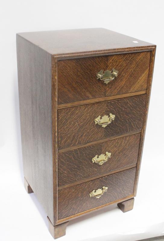Lot 64 of 787: A Georgian-style oak small chest of four short drawers on block feet, height 76cm.