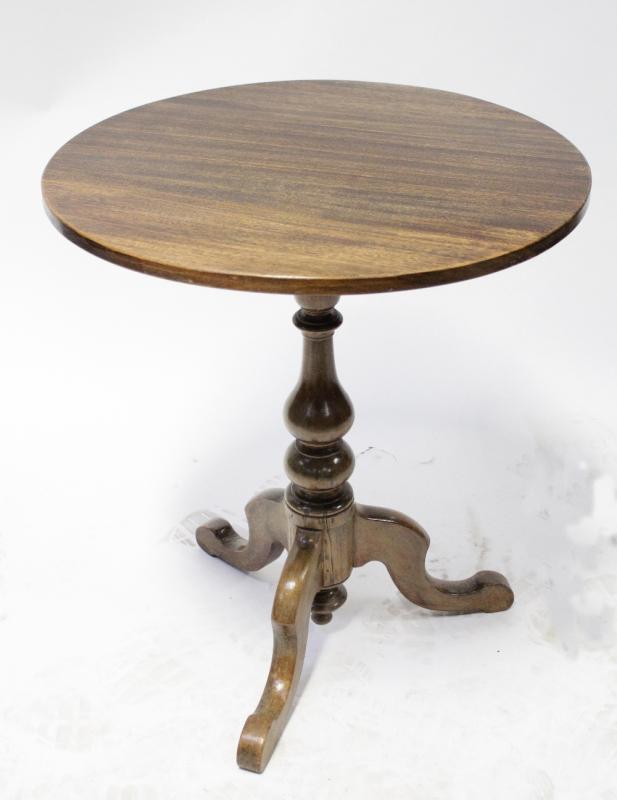 Lot 66 of 787: A part George III mahogany circular-topped table on carved baluster support and tripod cabriole base, diameter 59cm.