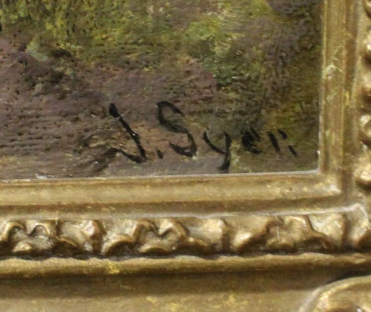 Lot 457 of 787: JOHN SYER RI (1835-1885); oil, rural scene with partially hidden cottage in the background with metal plaque inscribed 'A Country Lane, John Syer R.I. 1835-1885', signed lower right, 39 x 29cm, framed.