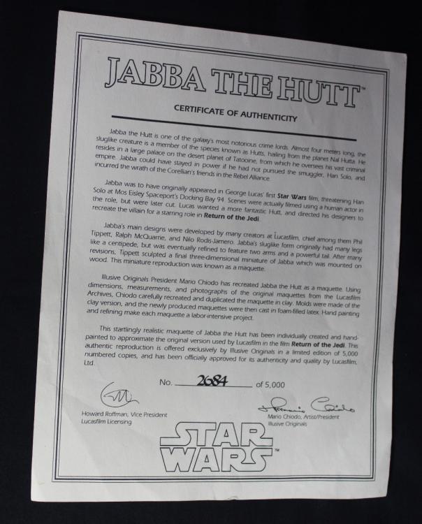 Lot 10 of 288: STAR WARS; a limited edition Illusive Originals 'Jabba the Hutt' rubber maquette, no. 2684/5000, width of rectangular base 75cm.