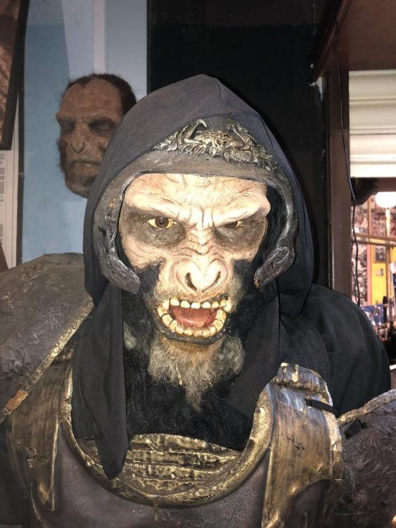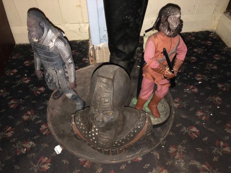 Lot 46 of 288: THE PLANET OF THE APES; a large figure with accessories, height approx 173cm, a small bust, two figures and a reprinted sign (5).