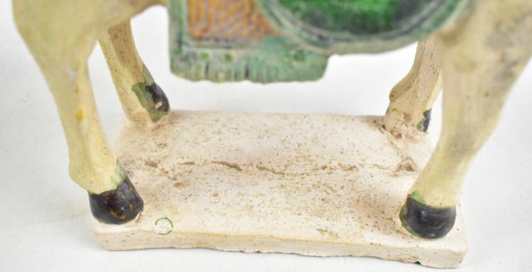 Lot 2 of 744: A Chinese sancai glazed pottery model of a saddled donkey, height 25cm, with label inscribed 'Chinese Ming Dynasty Votive Pottery Pony C.1368-1644AD'.