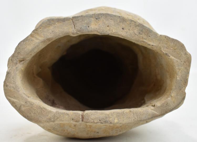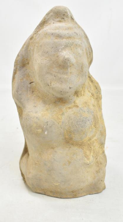Lot 3 of 744: A Chinese Han dynasty stoneware figure, upper torso and head only, features indistinct, height 28cm.