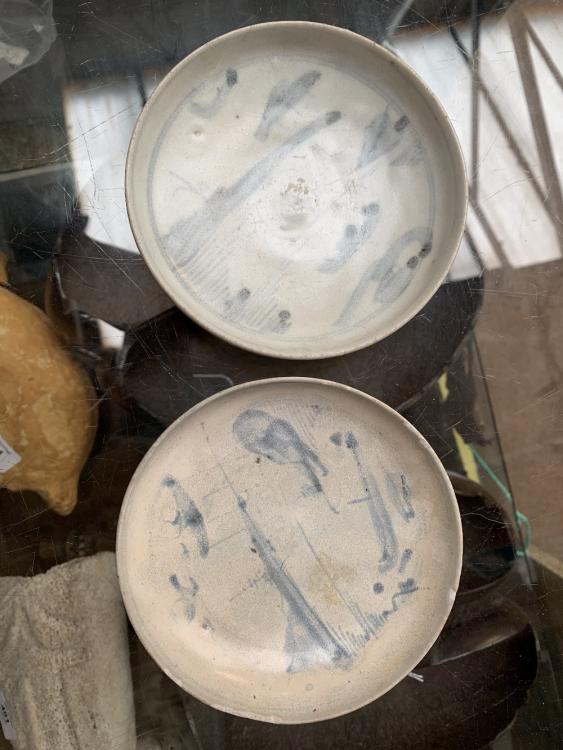 Lot 21 of 744: Four Chinese late Ming provincial blue and white porcelain saucers, each painted with landscape scenes, diameter of largest example 12.5cm, and three blanc-de-Chine glazed tea bowls (7). Provenance: this lot was part of lots 510 and 908 which was sold by Christie's in 1992 as part of the Vung Tau Cargo.