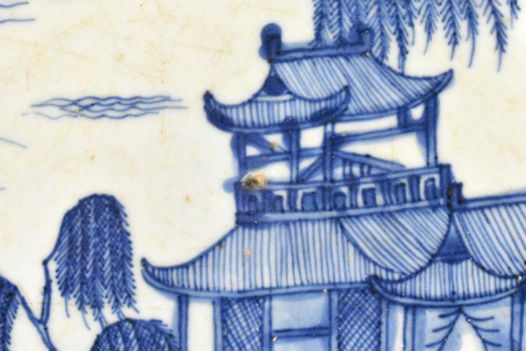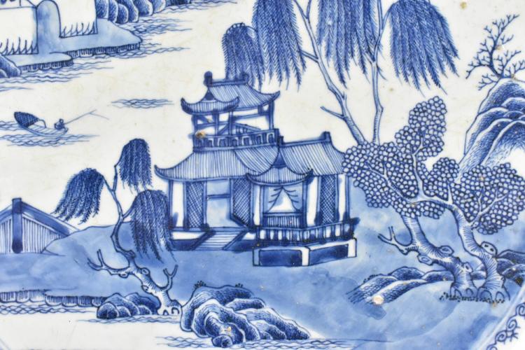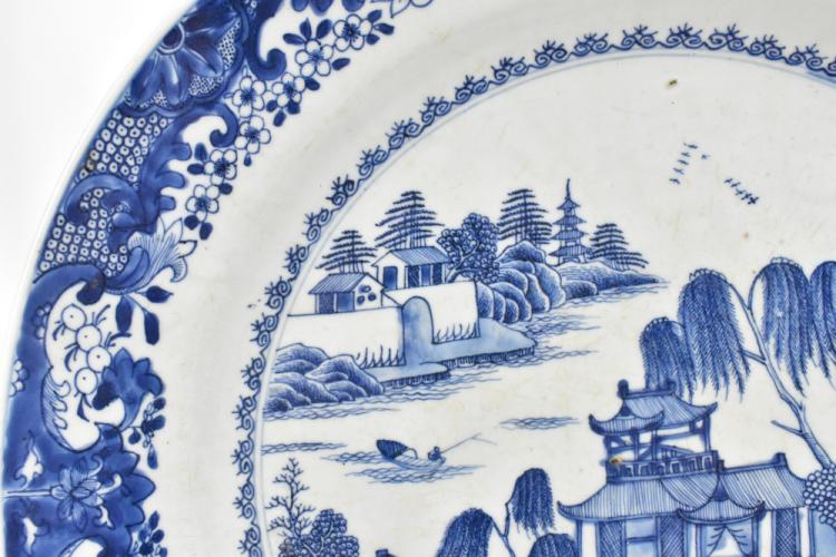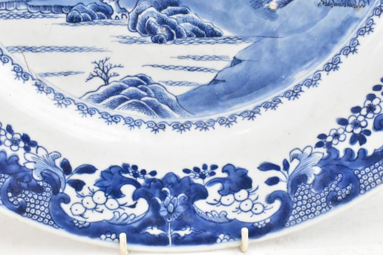 Lot 30 of 744: An 18th century Chinese porcelain wall charger painted with a landscape scene, diameter 46cm.