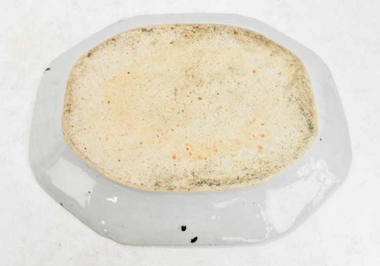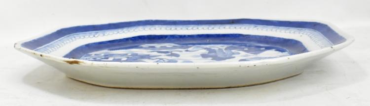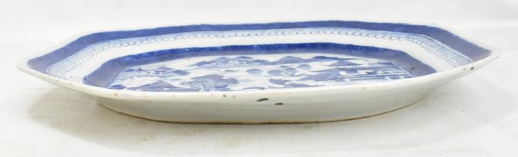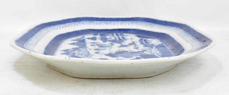 Lot 38 of 744: An early 19th century Chinese Export porcelain blue and white octagonal meat plate, decorated with a landscape to centre, 43.5 x 35.5cm.