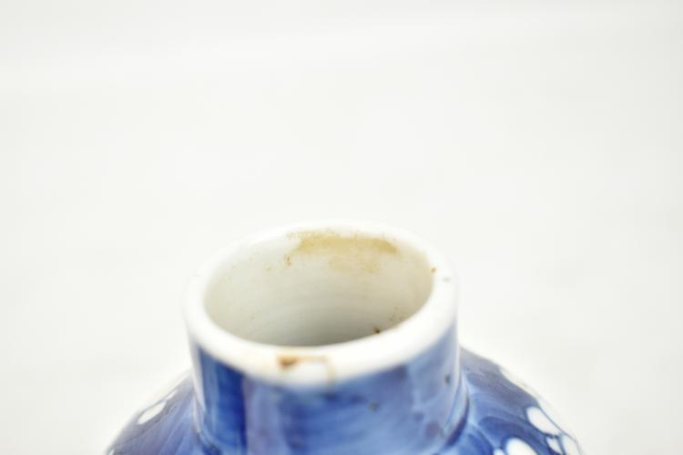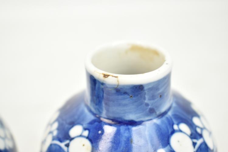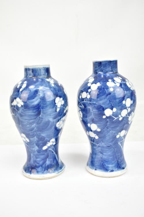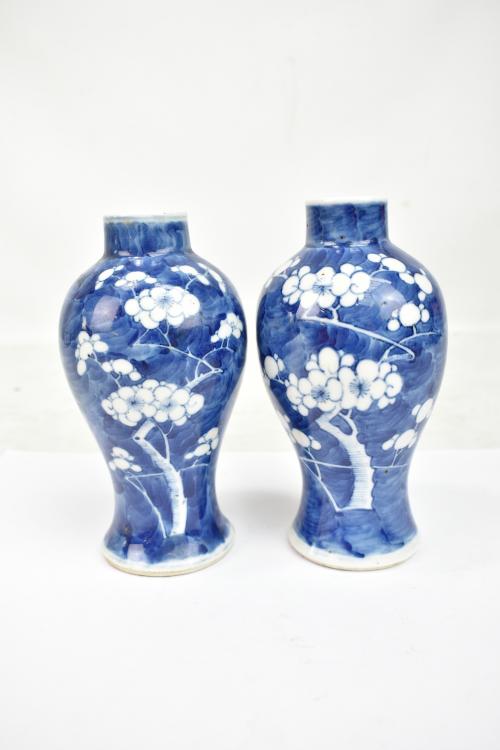 Lot 53 of 744: A pair of late 19th/early 20th century Chinese blue and white baluster vases with painted four character marks to the bases, height 18cm (2).
