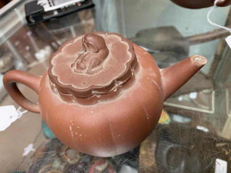 Lot 57 of 744: Three 20th century Chinese Yixing teapots, one with reticulated detail, height 12cm, all unmarked (3).