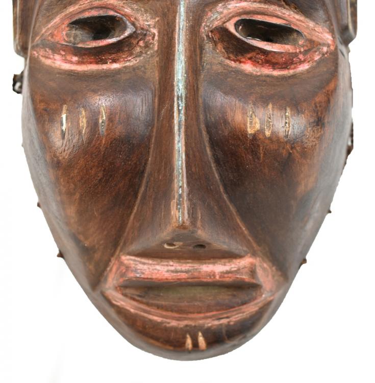Lot 457 of 744: Four African carved wooden masks including a Dan example and one Javanese example (lower left as pictured), largest approx 33cm (5).
