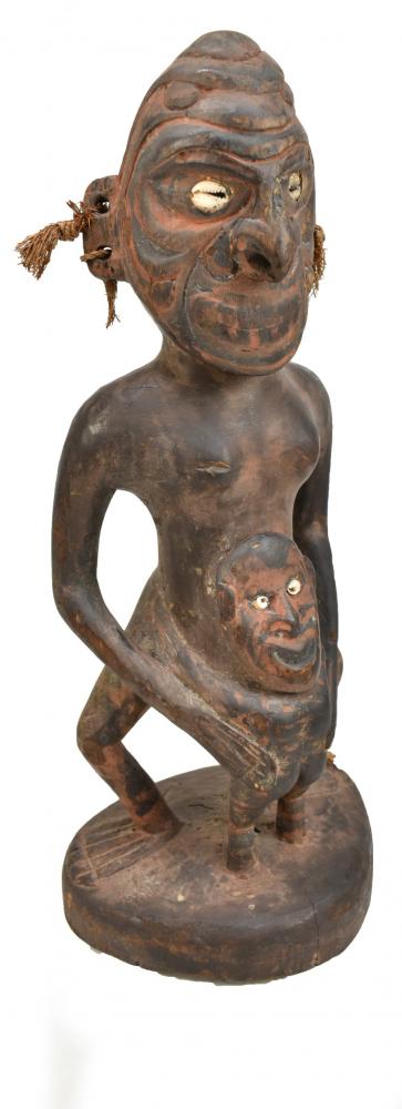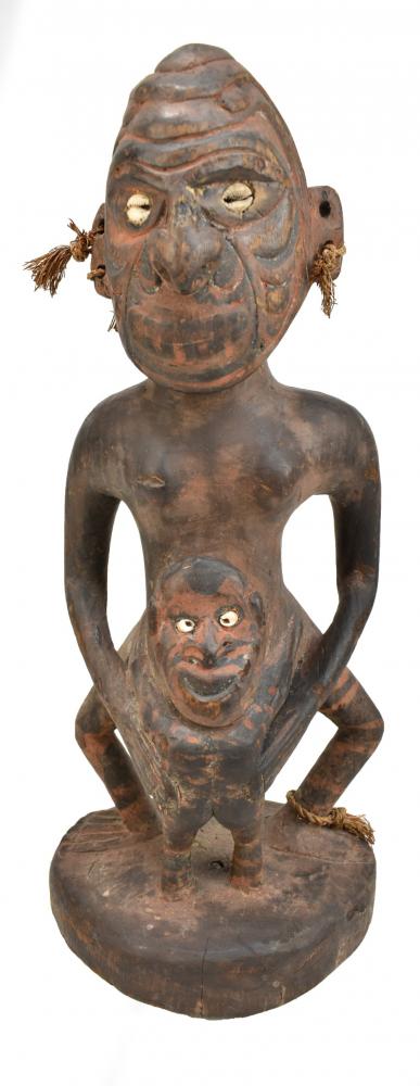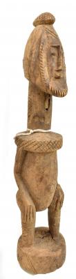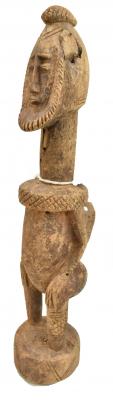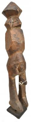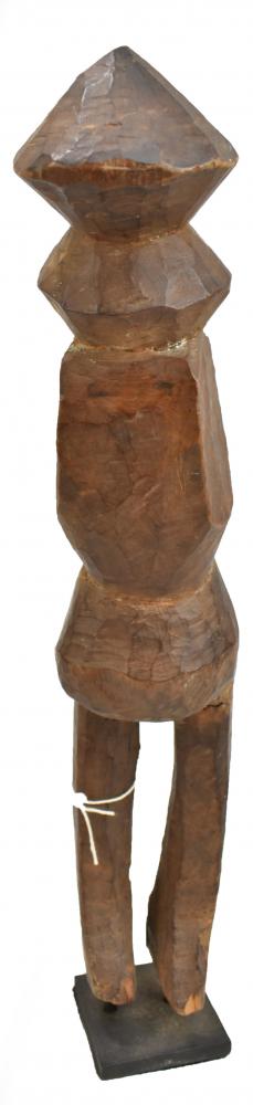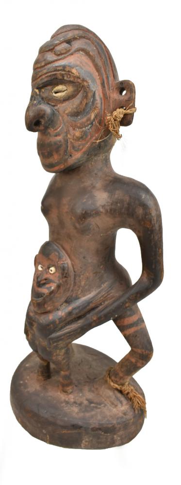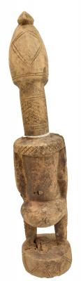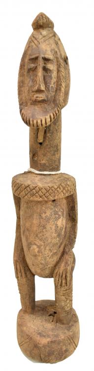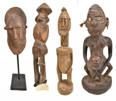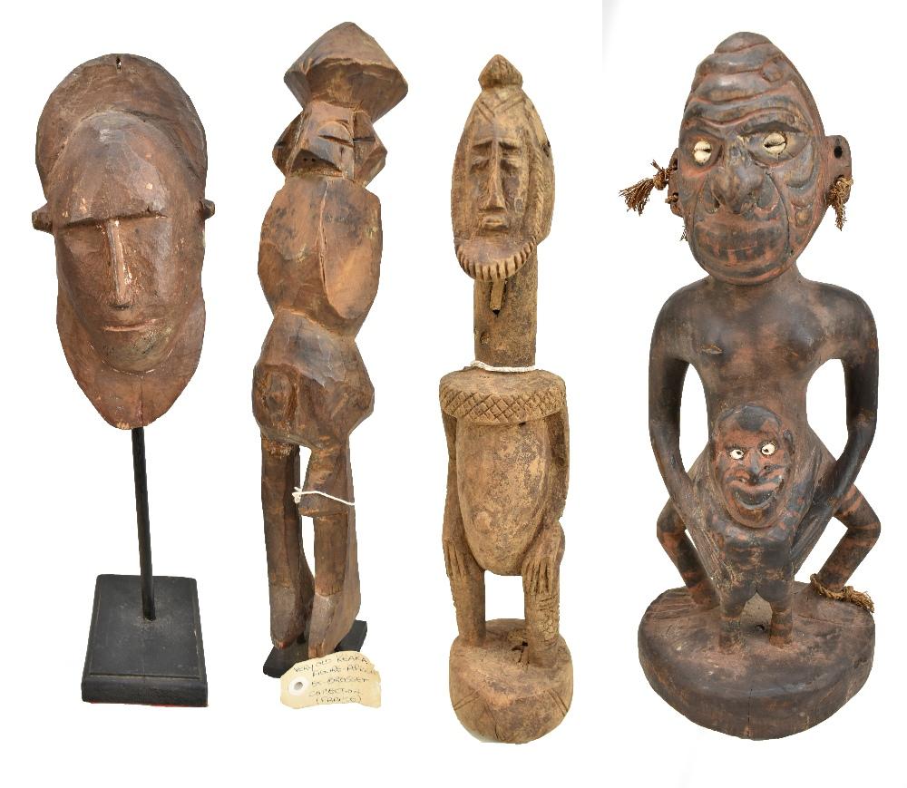 Lot 465 of 744: An early 20th century Dogon ritual figure, height 41cm, a Keaka figure, height 38cm, a mask and a fertility figure/fetish from Lower Sepik, Papua New Guinea (4).