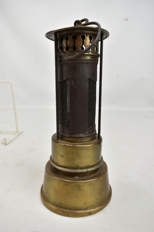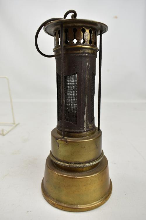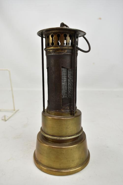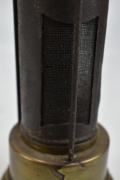Lot 24 of 1228: An early to mid 20th century brass safety heater with hook, height 22cm.