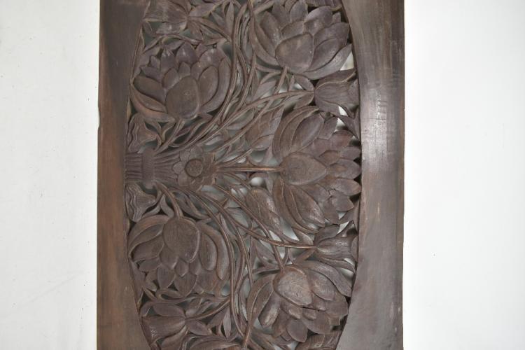Lot 26 of 1228: A late 19th century foliate carved wooden rectangular panel, 102 x 54cm.