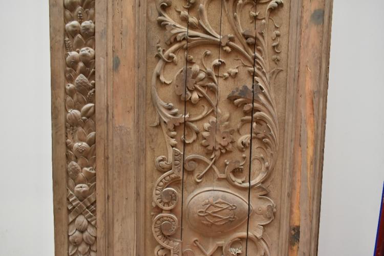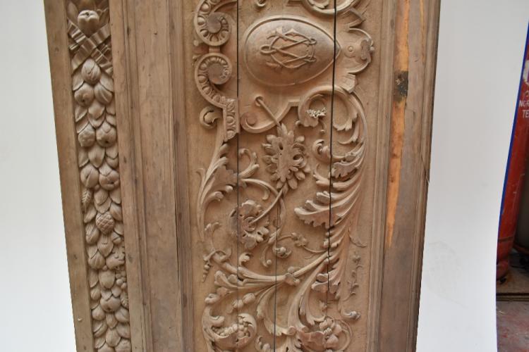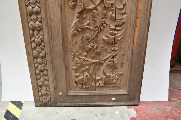 Lot 27 of 1228: A large late 19th century foliate carved wooden rectangular panel with stylised device to centre, approx 72 x 160cm.