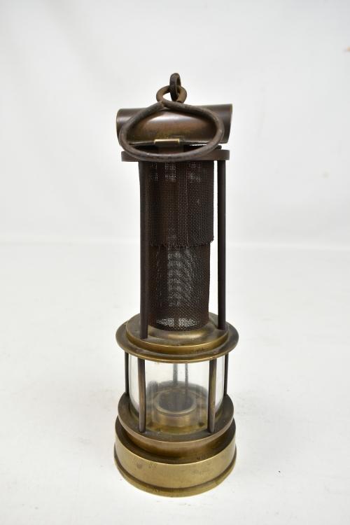 Lot 42 of 1228: A late 19th century five bar Clanny-type miner's safety lamp in the style of Joseph Cooke of Birmingham, circa 1890, No.60 but otherwise unmarked, height excluding loop handle 23cm.