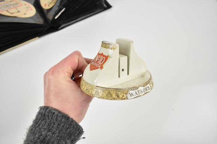 Lot 71 of 1228: A mixed lot of assorted advertising and collectors' items to include a Watson's match striker, various advertising beer mats, and an enamelled railway sign 'C & W Department' (cut down), length 46cm.