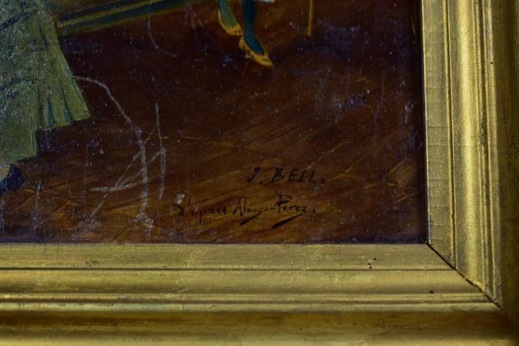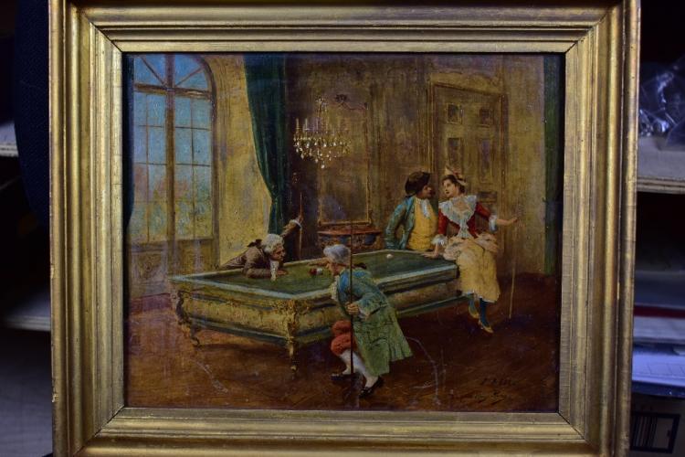 Lot 810 of 1228: J BELL; an overpainted photograph, 'The Billiard Room', signed lower left, 21.5 x 26cm.