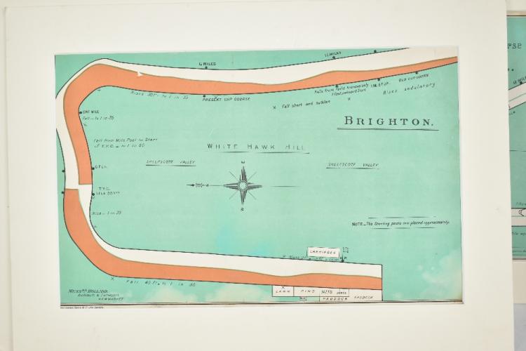 Lot 812 of 1228: AFTER F H BAYLES; six coloured racecourse plans comprising 'Stockton', 'Brighton', 'Leicester', 'Wolverhampton', 'Warwick' and 'Blackwell' from The Racecourses Atlas published in 1903, each 25.5 x 40.5cm (6).