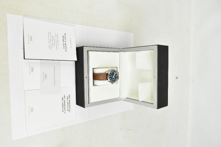 Lot 1 of 1529: IWC (INTERNATIONAL WATCH COMPANY); a Petit Prince gentleman's stainless steel wristwatch, the blue tinted dial inscribed 'IWC Shaffhausen, mark XVIII automatic' with date aperture, case no.5507082, on leather bracelet with correct buckle, diameter excluding winding crown approx 40mm, sold with original box, operating instruction booklet, service card, cleaning cloth and warranty card which confirms the case number.