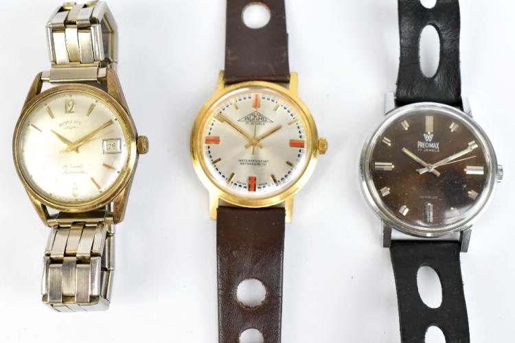 Lot 48 of 1529: Three gentleman's wristwatches comprising Ackro, Rotary and Precimax (3).