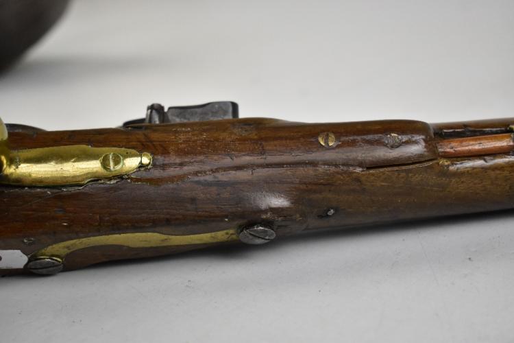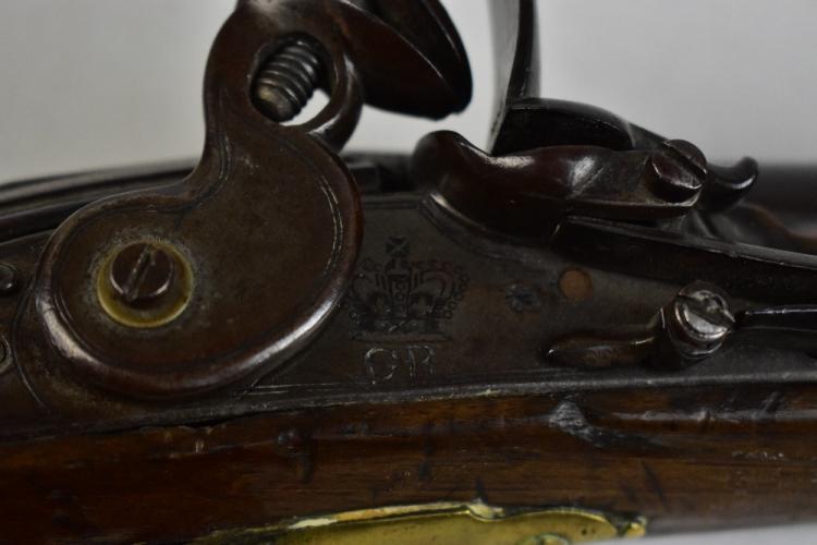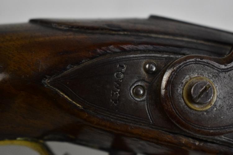Lot 6 of 679: An early 19th century walnut stocked flintlock pistol, the lock plate stamped 'Tower, GR' beneath a crown, with brass furniture and various marks to the barrel, length 38.5cm.