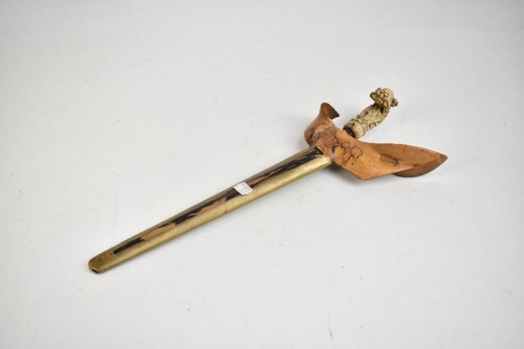 Lot 26 of 679: A Javanese kris with possibly 17th century carved bone handle and simple sheath, length 50cm.