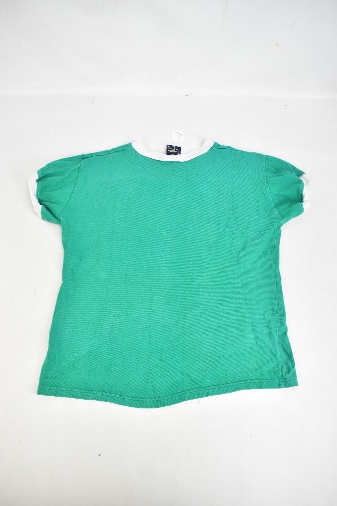 Lot 149 of 679: GEORGE BEST; a signed Toffs & Co cotton retro-style home Northern Ireland home shirt with embroidered badge, size M.