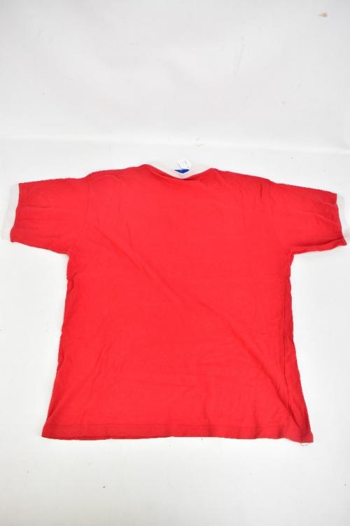 Lot 150 of 679: MANCHESTER UNITED; an Umbro Treble Winning Year cotton training-style shirt with embroidered badge and logo, signed by Giggs, Sheringham, May, Stam, Van der Gouw, Keane, Phil and Garry Neville, Beckham, Solskjaer, Butt, Schmeichel, Brown, Scholes, Cole, Yorke and Irwin, size XL.